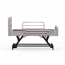Кровать оснащена пультом дистанционного управления, с помощью которого можно легко менять положение изголовья и ножной части. Кроме того, предусмотрена регулировка высоты спального места под индивидуальные потребности. Складные боковые ограждения, выполненные из алюминия, легко опускаются, обеспечивая быстрый доступ к пациенту. Модель способна выдержать вес до 220 килограммов.